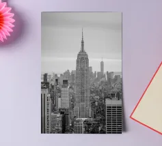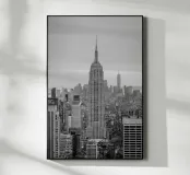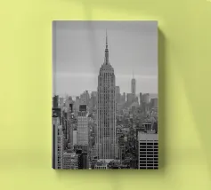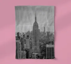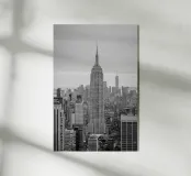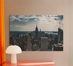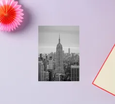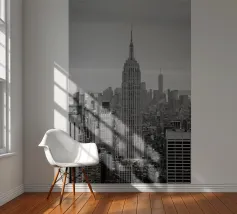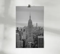 Das Foto zeigt die Skyline von New York City mit einem gigantischen Blick über Manhattan. Im Vordergrund sieht man das bekannte Empire State Building. Rechts im Hintergrund ragt der One World Tower in den Himmel.
