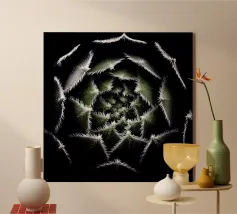 Entdecken Sie den zarten Charme einer kleinen weißen Spinne, die ihr kompliziertes Netz in ein herzförmiges Design webt, das die Kunstfertigkeit der Natur mit romantischer Symbolik verbindet: Herzförmiges Netz - Ein seltenes und fesselndes Muster, das für Liebe, Verbindung und die Schönheit der Präzision der Natur steht. Kleine weiße Spinne - Elegant und minimalistisch, symbolisiert Geduld und Handwerkskunst. Zartes Design - Das feine, symmetrische Netz verleiht jedem Raum einen Hauch von Gelassenheit und Charme. Dieses herzförmige Netz, das von einer kleinen weißen Spinne erschaffen wurde, ist eine faszinierende Mischung aus natürlicher Kreativität und symbolischer Bedeutung, die es zu einem einzigartigen Geschenk macht.
