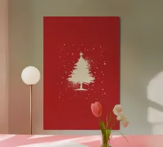 Ein minimalistischer Weihnachtsbaum mit festlichem Charakter: Feine rote Linien auf tiefrotem Hintergrund formen eine moderne, elegante Silhouette. Dieses Design ist perfekt für alle, die ihre Weihnachtsdekoration schlicht, stilvoll und kunstvoll mögen. Es verbindet Wärme und Ruhe – ideal für Wohnzimmer, Flur oder als dezentes saisonales Statement an der Wand.