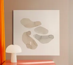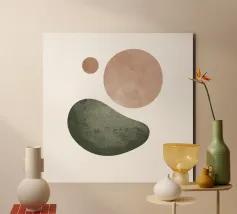This minimalist watercolor pattern features softly scattered organic pebble shapes in warm beige and muted olive green tones. The hand-painted texture and airy white background create a calm, modern aesthetic inspired by nature and Scandinavian simplicity. Perfect for contemporary interiors, this design adds subtle character without visual clutter. Ideal for living rooms, bedrooms, offices, and stylish gallery walls seeking a balanced, natural look