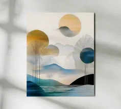 Gewellte Linien, blockige Formen und genug staubiges Rosa, um Ihren Therapeuten stolz zu machen. Poster 00904 ist purer Algorithmus-Minimalismus aus der Mitte des Jahrhunderts. Ein weiteres stolzes Stück der "Unoriginal Art Collection" - smart, stilvoll und immer ein wenig passiv-aggressiv.
