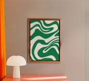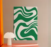 Ein faszinierender abstrakter Kunstdruck mit einem kühnen, fließenden und marmorierten Muster, das die organische Bewegung einfängt. Das Design ist ein kontrastreiches Wechselspiel zwischen leuchtendem Smaragdgrün und reinem Weiß. Die dicken, glatten und geschwungenen Linien erzeugen einen psychedelischen Lava-Lampen-Effekt, der stark an die Retro-Ästhetik der 60er und 70er Jahre erinnert. Das Fehlen von Text oder starrer Geometrie macht dieses Plakat zu einer reinen Studie in Farbe und Bewegung. Dieses hochauflösende Digitalposter (7000x5000 Pixel, 300 dpi) sorgt für weiche Kurven und eine hervorragende Farbtiefe und bietet ein trendiges, maximalistisches oder grooviges Statement für jede moderne Einrichtung.