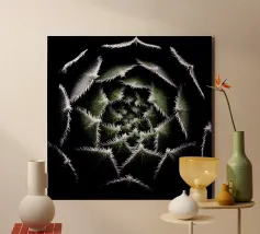 Entdecken Sie den zarten Charme einer kleinen weißen Spinne, die ihr kompliziertes Netz in ein herzförmiges Design webt, das die Kunstfertigkeit der Natur mit romantischer Symbolik verbindet: Herzförmiges Netz - Ein seltenes und fesselndes Muster, das für Liebe, Verbindung und die Schönheit der Präzision der Natur steht. Kleine weiße Spinne - Elegant und minimalistisch, symbolisiert Geduld und Handwerkskunst. Zartes Design - Das feine, symmetrische Netz verleiht jedem Raum einen Hauch von Gelassenheit und Charme. Dieses herzförmige Netz, das von einer kleinen weißen Spinne erschaffen wurde, ist eine faszinierende Mischung aus natürlicher Kreativität und symbolischer Bedeutung, die es zu einem einzigartigen Geschenk macht.