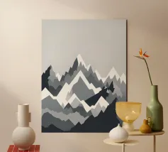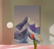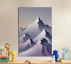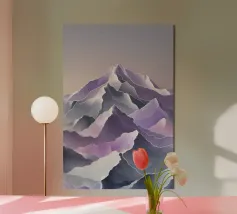 Diese elegante abstrakte Darstellung des Kangchenjunga zeigt den hoch aufragenden Himalaya-Gipfel in einer Kaskade weicher, gewellter Formen. Der sanfte Übergang zwischen tiefen Violetttönen, Grautönen und eisigem Weiß verleiht dem Berg eine einzigartige Tiefe und ein surreales Gefühl. Feine weiße Linien betonen die natürlichen Konturen des Berges und verleihen ihm ein Gefühl von Bewegung und Fließendheit. Das Zusammenspiel von Farbverläufen und fließenden Elementen schafft eine ruhige und doch kraftvolle Komposition, die die Erhabenheit der Natur auf künstlerische und zeitgenössische Weise neu interpretiert.