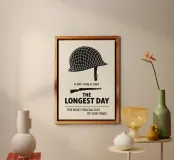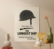 Der längste Tag drucken, Alternative Film-Poster, Minimal Wall Art, schwarz & weiß, Qualität Drucke, WW2, D-Day 6. Juni, Helm, Film-Fans Geschenk