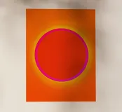 Diese feurige Lichtquelle zieht den Blick unwiderstehlich in ihr Zentrum. Der tiefrote Kern, umrahmt von einem pulsierenden, neonfarbenen Magenta-Ring, vibriert vor Intensität. Beeinflusst vom Color Field Painting eines Mark Rothko und greller Op-Art, nutzt die abstrakte Arbeit digitale Perfektion, um eine fast hypnotische Tiefenwirkung zu erzeugen. Die weiche, orangefarbene Aureole des Hintergrunds lässt das Sujet förmlich glühen, als wäre es ein futuristischer, kosmischer Körper. Ein Triumph der warmen Töne, der Optimismus und pure Energie ausstrahlt – ein kühnes Statement für jede Wand.