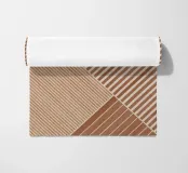 Auffälliges geometrisches Muster mit abwechselnd hell- und dunkelbraunen diagonalen Linien, die sich in verschiedenen Winkeln kreuzen und so ein dynamisches und visuell ansprechendes Muster erzeugen.