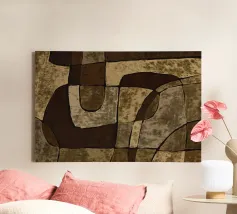 Ein geometrisches Muster aus Dreiecken in Erdtönen angeordnet Leinwand