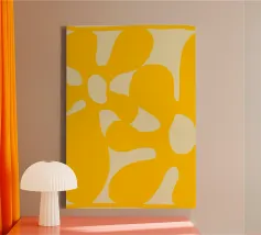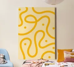 Verwandeln Sie Ihren Raum mit diesem kühnen und lebendigen abstrakten Kunstwerk, das geschwungene gelbe Linien auf einem cremefarbenen Hintergrund zeigt. Dieses dynamische Werk verkörpert Energie und Kreativität und eignet sich perfekt, um Ihrer Einrichtung einen modernen Touch zu verleihen. Mit seinem modernen Design und der auffälligen Farbpalette ist dieses Kunstwerk ideal für Büros, Wohnzimmer und kreative Räume. Seine verspielte und doch anspruchsvolle Ästhetik spricht Fans von Minimalismus und abstrakter Kunst an und bietet vielseitige Gestaltungsmöglichkeiten.