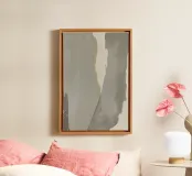 Abstrakte Kunst von Grau, Beige und Off-White Pinselstriche Leinwand mit Schattenfugenrahmen