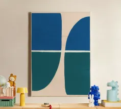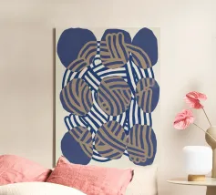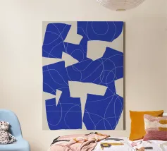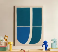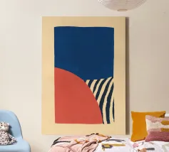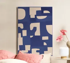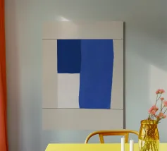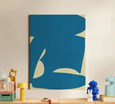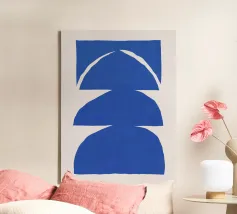 Abstrakte vertikale Komposition in Blau & Pfirsich Leinwand