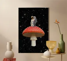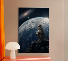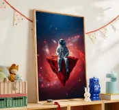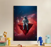 Tauchen Sie ein in eine kosmische Traumwelt mit diesem eindrucksvollen Kunstwerk, das einen Astronauten zeigt, der ruhig auf einem schwebenden roten Felsen über einer glühenden Galaxie sitzt. Lebendige Nebelfarben, detaillierte Weltraumtexturen und die ruhige Pose schaffen eine kraftvolle Mischung aus Sci-Fi-Wunder und surrealer Fantasie. Dieses Bild ist perfekt für Weltraumliebhaber, Fans futuristischer Kunst und Liebhaber moderner Dekoration und verleiht jedem Wohnzimmer, Studio oder kreativen Raum Energie, Mysterium und visuelle Wirkung. Eine atemberaubende Hommage an die Erforschung und das unendliche Universum.