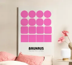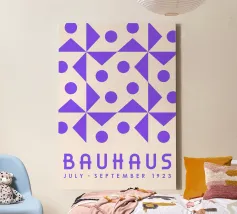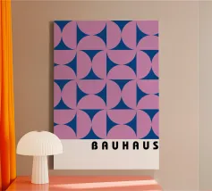 Ein abstraktes Bauhaus-Design mit neun Kreisen in Schwarz und einem farbigen Akzent in Lila. Minimalistische Formen, klare Strukturen und reduziertes Design machen dieses Kunstwerk zu einem zeitlosen Klassiker, inspiriert von der Bauhaus-Bewegung. Ideal für Liebhaber moderner Kunst, geometrischer Poster und minimalistischer Wandgestaltung. Perfekt als Bauhaus Poster, abstraktes Wandbild, Mid Century Modern Print, Retro Art, Designposter, modernes Wohnaccessoire und Geschenkidee für Designliebhaber.