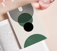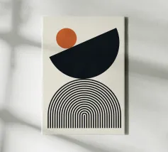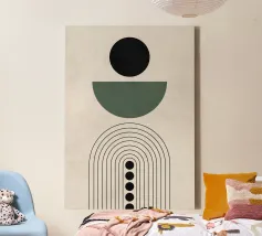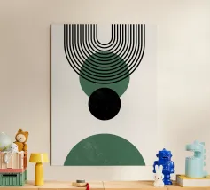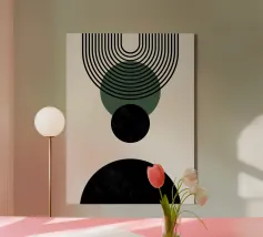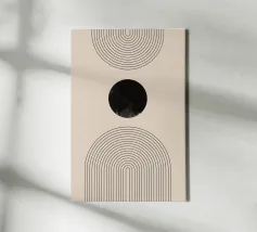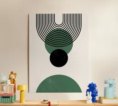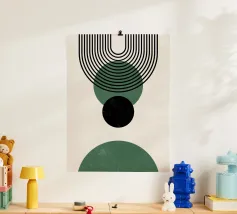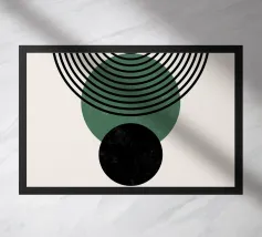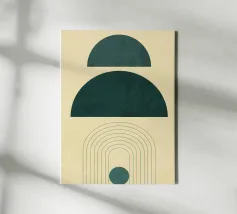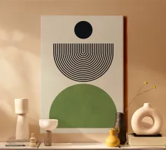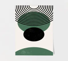 Dieses minimalistische Design kombiniert klare Linien mit geometrischen Formen in Schwarz und Grüntönen auf einem hellen Hintergrund. Die harmonische Anordnung der Kreise und Bögen verleiht dem Motiv eine zeitlose und moderne Ästhetik. Perfekt für Wandbilder, Tassen, Kissen und Handyhüllen, bringt dieses Design eine elegante und ruhige Atmosphäre in jeden Raum. Ideal für Liebhaber des Boho-Stils und skandinavischer Designs – eine vielseitige Wahl für Dekoration oder als stilvolles Geschenk.