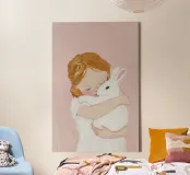 Bunny Playroom Print, Kinderzimmer Wandkunst, moderne rosa Kunst Leinwand