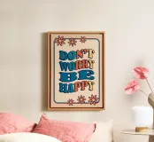 "Don't Worry Be Happy" Retro Groovy Optimistic Kunstdruck Leinwand
