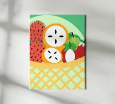mit Motiven von frischen Früchten wie Kiwi und Kirschen.