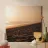 Goldener Sonnenuntergang über einem ruhigen Strand mit sanften Wellen und weichen Leinwand