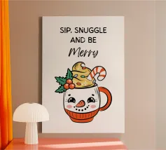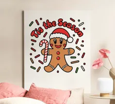 Ein fröhlicher Keks mit Weihnachtsmannmütze ist von festlichen Dekorationen, Büchern und heißem Kakao umgeben. Die Worte "I teach the smartest cookies #tistheseason" fügen eine spielerische, weihnachtliche Botschaft hinzu.