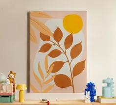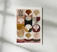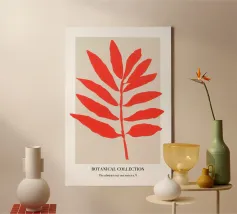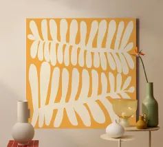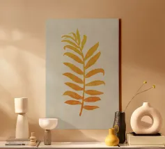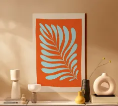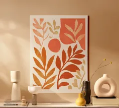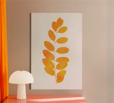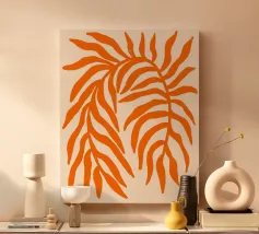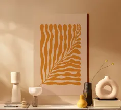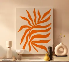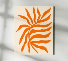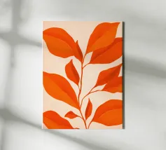 Minimale abstrakte Blattform in warmen Orangetönen, hell und modern im Stil.