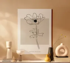 Diese raffinierte Pfingstrose, die mit einer durchgehenden Linie gezeichnet ist, verkörpert die Schönheit und Zartheit der Natur. In Kombination mit organischen Formen in Puderrosa strahlt sie eine Aura von Weiblichkeit und Sanftheit aus. Dieses minimalistische Design passt perfekt zu einer modernen, romantischen oder skandinavischen Einrichtung. Dieses elegante und zeitlose Blumenkunstwerk verleiht Ihrem Zuhause einen poetischen und beruhigenden Touch.