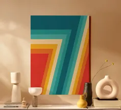Abstrakt-visuelles Roadtrip-Feeling: Dieses Poster verneigt sich vor dem Retro-Design der 70er-Jahre und erinnert mit seinen dynamischen Farbkurven an endlose Highways, Freiheit und kalifornische Leichtigkeit. Die bewusst gealterte Textur verleiht nostalgischen Charme, während das Zusammenspiel aus Türkis, Rot und Sonnengelb optimistische Energie in jeden Raum bringt – gleichermaßen ideal für kreative Arbeitsbereiche oder stylische Wohnzimmerwände.