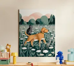 Verspielte Verfolgungsjagd auf der Wiese Leinwand