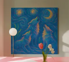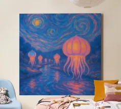Erforschen Sie eine traumhafte Vision des Weltraums mit diesem faszinierenden kosmischen Astronauten-Kunstwerk. In einem wirbelnden, Van-Gogh-inspirierten Stil gemalt, zeigt das Design einen einsamen Astronauten, der durch eine lebendige Galaxie voller glühender Sterne und spiralförmigem Licht driftet. Satte Blautöne, Gelbtöne und warme Lichter schaffen eine strukturierte, emotionale Atmosphäre, die sowohl friedlich als auch jenseitig wirkt. Perfekt für Weltraum-Enthusiasten, Liebhaber surrealer Kunst und alle, die ein bedeutungsvolles, fantasievolles Kunstwerk suchen. Ideal für Schlafzimmer, Büros, Ateliers und moderne Innenräume, die einen kühnen künstlerischen Ausdruck schätzen.