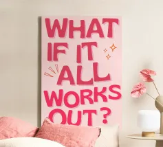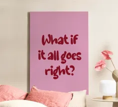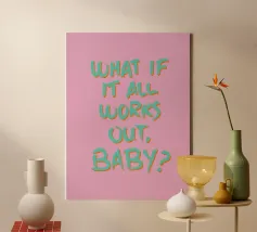 Eine einfache Frage voller Hoffnung: Was, wenn alles gut geht? Dieses minimalistische Design bringt ruhigen Optimismus an jede Wand - perfekt für Schlafzimmer, kreative Räume oder als sanfte tägliche Erinnerung daran, dass gute Dinge passieren können.