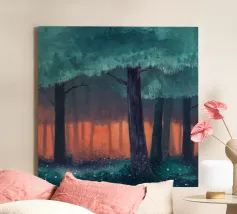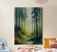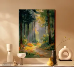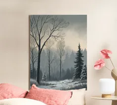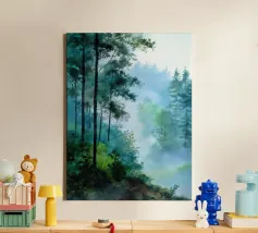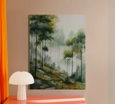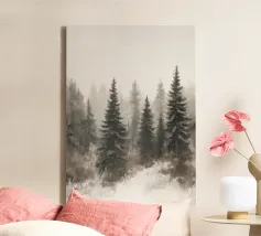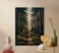 Kommen Sie mit "Whispering Pines - Path Through the Forest" zur Ruhe und zum Staunen. Dieses friedliche Kunstwerk fängt eine neblige Waldszene ein, in der hohe Kiefern über einen ruhigen, von weichem Gras und Wildblumen gesäumten Weg wachen. Die gedämpften Töne und das verträumte Licht wecken Gefühle der Gelassenheit, der Achtsamkeit und der Flucht in die Natur. Ideal für Naturliebhaber, Minimalisten oder gemütliche Innenräume, bringt dieses Stück die Frische des Waldes in Ihr Zuhause. Eine Erinnerung daran, langsamer zu werden, tief durchzuatmen und die Schönheit in der Stille zu finden.