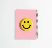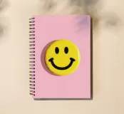 Nahaufnahme eines gelben Smiley-Pin-Buttons auf pinkem Hintergrund. Minimalistisches Flat-Lay mit negativem Raum, hochauflösend, fein detailliert und isoliert auf schlichtem Hintergrund. Professionelle Farbkorrektur, saubere Linien und scharfer Fokus erzeugen eine klare, ästhetische Komposition.