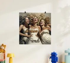 Feiern Sie Ihre unzertrennliche Verbindung mit "My Best Friend and I Are Better Than You", einem witzigen Pop-Art-Druck, der klassische Eleganz mit einem verspielten, modernen Bekenntnis zur Freundschaft verbindet. Dieses fesselnde Kunstwerk zeigt zwei heitere historische Figuren, die elegant auf einem luxuriösen Sofa sitzen und in ein Buch vertieft zu sein scheinen. Der fette, pinkfarbene Text MY BEST FRIEND AND I ARE BETTER THAN YOU" überlagert das Bild und verwandelt die zeitlose Szene in ein humorvolles und selbstbewusstes Statement der Exklusivität. Perfekt, um jedem modernen Raum Persönlichkeit und einen Hauch von unbeschwertem Charme zu verleihen. Gefertigt in einer