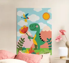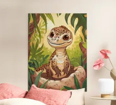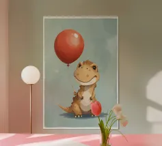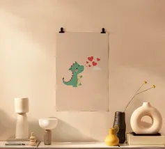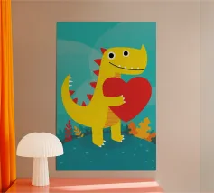 Dieser süße kleine Dinosaurier verbreitet Liebe, denn er umklammert freudig ein leuchtend rosa Herz, während er auf einem Bett aus bunten Wolken schwebt. Mit seinen großen, leuchtenden Augen und seinem verspielten Ausdruck bringt dieser Dino einen unwiderstehlichen Charme in jede Umgebung. Die leuchtenden Farben Orange, Grün und Rosa machen ihn zu einem optischen Leckerbissen für Dino-Liebhaber jeden Alters. Ob als niedliche Ergänzung zu Ihrer Einrichtung oder als lustiges Geschenk, dieser liebenswerte Dinosaurier ist bereit, Lächeln und Wärme zu verbreiten!