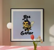 Eine niedliche Biene, die ein buntes Headset trägt und einen Game-Controller in der Hand hält, bereit zum Spielen. Dieses Kunstwerk verbindet die Welt des Gamings mit dem Charme einer summenden kleinen Biene, die voller Energie und Freude ist. Perfekt für Gamer, Streamer und alle, die niedliche und ausgefallene Designs lieben.
