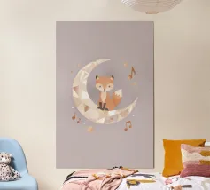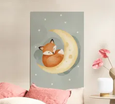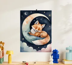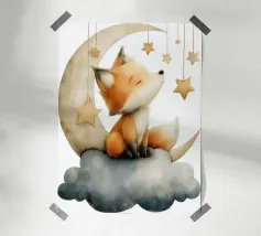 Niedlicher schlafender Fuchs auf Regenbogen mit himmlischen Elementen Hahnemühle