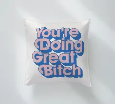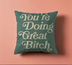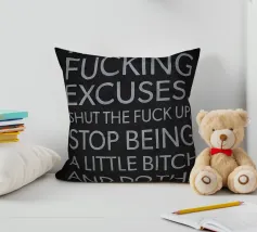 "Die Worte YOU'RE F*CKING LAZY BITCH' stehen in einer fetten, schwarzen serifenlosen Schrift, mit einem Sternchen, das das 'U' in 'FUCKING' zensiert, gefolgt von der Phrase 'PUT DOWN PHONE AND GET UP' in einer kleineren, zarteren Serifenschrift, alles vor einem strukturierten, gebrochen weißen Hintergrund",