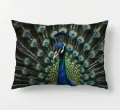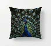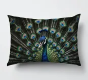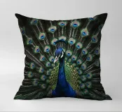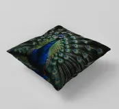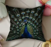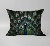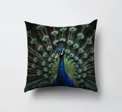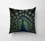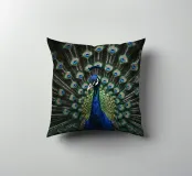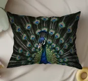 Ein atemberaubendes Foto, das einen Pfau in seiner vollen, faszinierenden Pracht zeigt. Die reichen Juwelentöne des Gefieders und die Größe des Schwanzes machen dieses Bild zu einem eindrucksvollen Kunstwerk.