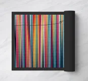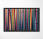 Dieses beeindruckende abstrakte Kunstwerk "Vibrant Spectrum" fängt ein dynamisches Zusammenspiel von Farbe und Bewegung ein. Vertikale Linien unterschiedlicher Breite in einer reichen Palette von tiefen Blautönen, feurigen Orangetönen, leuchtenden Rosatönen und zarten Gelbtönen schaffen eine rhythmische, fast gewebte Textur. Kühne, gestische schwarze Striche ziehen sich über die Leinwand, unterbrechen die geordneten Linien und fügen ein Element von roher Energie und Spontaneität hinzu. Dieses Werk ist ein modernes und raffiniertes Statement und eignet sich perfekt, um jedem zeitgenössischen Wohnraum, Büro oder jeder Galeriewand einen Farbakzent und visuelles Interesse zu verleihen.