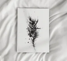 Modernes und minimalistisches abstraktes Bild mit Linien und Farbspritzern.