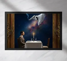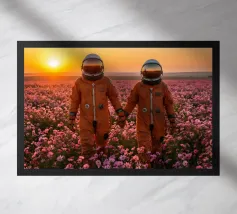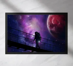 Tauchen Sie ein in eine kosmische Traumwelt mit diesem eindrucksvollen Kunstwerk, das einen Astronauten zeigt, der ruhig auf einem schwebenden roten Felsen über einer glühenden Galaxie sitzt. Lebendige Nebelfarben, detaillierte Weltraumtexturen und die ruhige Pose schaffen eine kraftvolle Mischung aus Sci-Fi-Wunder und surrealer Fantasie. Dieses Bild ist perfekt für Weltraumliebhaber, Fans futuristischer Kunst und Liebhaber moderner Dekoration und verleiht jedem Wohnzimmer, Studio oder kreativen Raum Energie, Mysterium und visuelle Wirkung. Eine atemberaubende Hommage an die Erforschung und das unendliche Universum.