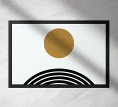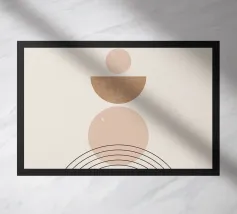 Dieses geometrische Design kombiniert klare schwarze Linien, die einen Halbkreis formen, mit überlagerten Kreisen in Grün und Schwarz. Der Kontrast zwischen den gedeckten Farben und dem hellen Hintergrund verleiht diesem Motiv eine moderne und harmonische Ästhetik. Perfekt für Wandbilder, Tassen, Kissen oder Handyhüllen, bringt es eine elegante und beruhigende Atmosphäre in jeden Raum. Ideal für Liebhaber minimalistischer und zeitloser Boho-Kunst sowie als inspirierende Geschenkidee.
