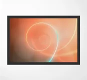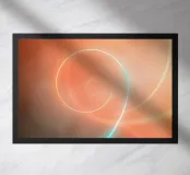 Wirbelnde Kurven in weichen Farbverläufen von Orange und Petrol schaffen ein abstraktes Design. Dieser Hintergrund hat einen beruhigenden Spiraleffekt, bei dem die Farben nahtlos ineinander übergehen.