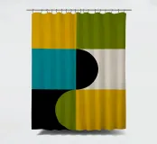 Inspiriert von der Ästhetik des Bauhauses und der Mitte des Jahrhunderts, zeigt dieses Kunstwerk kühne geometrische Blöcke in Gelb, Grün, Blau, Schwarz und Off-White. Die klaren Linien und starken Kontraste fangen die zeitlose Harmonie des modernistischen Designs ein.
