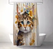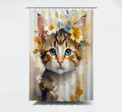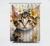 Dieses moderne Design zeigt ein kleines süßes Kätzchen mit Blüten auf dem Kopf. In zarten Aquarellfarben und mit goldenen Akzenten gestaltet, verbindet es natürliche Schönheit mit künstlerischer Eleganz. Die weichen Farbverläufe und der abstrakte Stil verleihen jedem Raum eine romantisch-verspielte und zugleich stilvolle Atmosphäre – ein echter Blickfang für Ihr Zuhause.