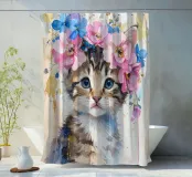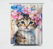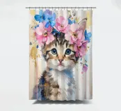 Dieses moderne Design zeigt ein kleines süßes Kätzchen mit Blüten auf dem Kopf. In zarten Aquarellfarben und mit goldenen Akzenten gestaltet, verbindet es natürliche Schönheit mit künstlerischer Eleganz. Die weichen Farbverläufe und der abstrakte Stil verleihen jedem Raum eine romantisch-verspielte und zugleich stilvolle Atmosphäre – ein echter Blickfang für Ihr Zuhause.