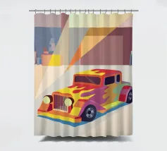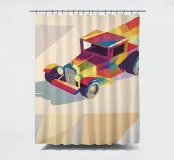 Holen Sie sich eine Illustration eines bunten Oldtimers mit einem modernen geometrischen Stil.