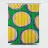 Ein lebhaftes und grafisches Muster aus leuchtend gelben Zitronenscheiben ist auf einem kontrastierenden lindgrünen Hintergrund angeordnet, wodurch ein frisches, spritziges und sommerliches Pop-Art-Design entsteht.