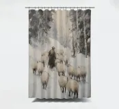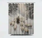 Ein idyllisches Wintermotiv: Ein Schäfer führt seine Schafherde über einen verschneiten Waldweg, umgeben von hohen Bäumen und sanftem Licht. Dieses Bild vereint Naturverbundenheit, Ruhe und traditionelle Winterromantik. Die sanften Farbtöne und die friedvolle Stimmung machen es zu einem zeitlosen Kunstwerk. Perfekt als Wandbild, Kissen, Tasse oder Textildesign – eine wunderbare Idee für alle, die ländliche Szenen, Tiere im Winter und nostalgische Kunst lieben.