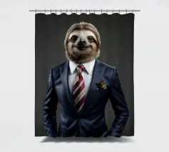 Ein langsames und ruhiges Faultier in gepflegter Bürokleidung, das mit ruhiger Zuversicht an seinen Arbeitsplatz geht.