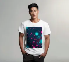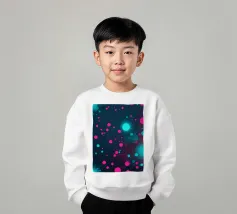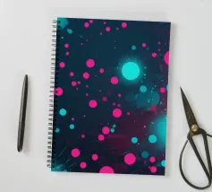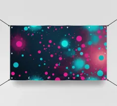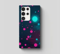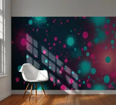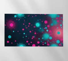 Bunte Kreise in Blau- und Rosatönen verteilen sich auf einem dunklen Hintergrund und schaffen ein lebendiges abstraktes Design, das sich perfekt für die Ästhetik des Desktops und künstlerische Ausdrucksformen eignet.